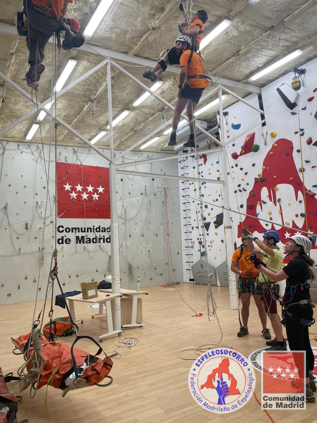 Este mes de Junio hemos vuelto a repasar en el rocódromo los contrapesos encadenados, incorporando esta vez un paso de nudos a uno de ellos, para finalizar la concatenación en un soporte, rematado con un balanceo controlado.
