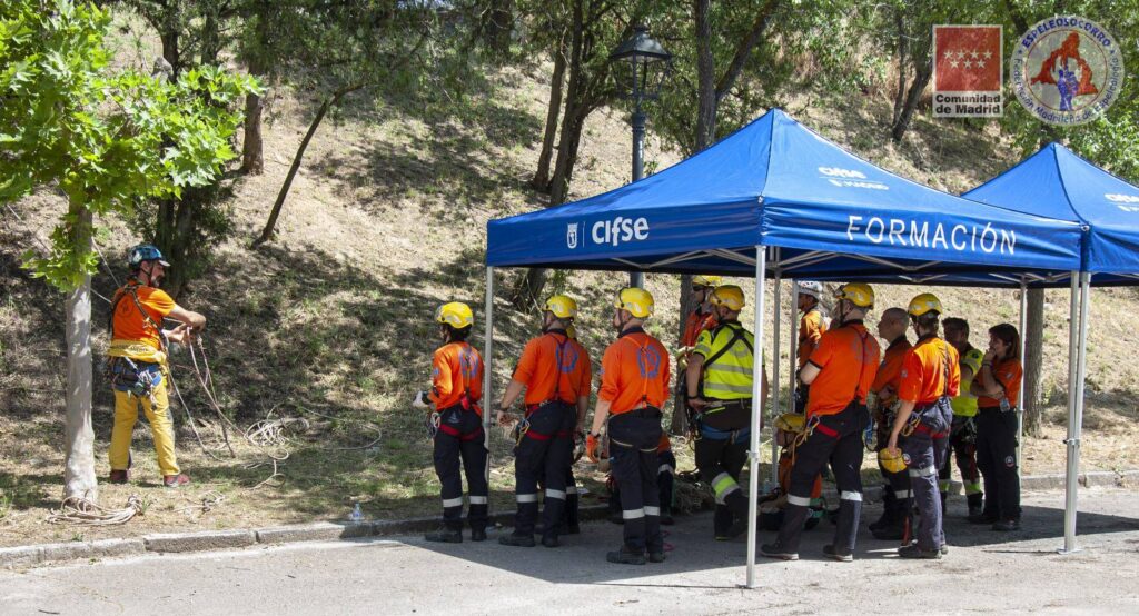Los días 14 y 15 de Junio, el Grupo de Espeleosocorro de Madrid (GSFME) ha participado un año más, en la formación de los voluntarios de Samur Protección Civil en el curso de Acceso a lugares difíciles, mostrando técnicas y habilidades para trabajar de manera segura en este tipo de entornos.