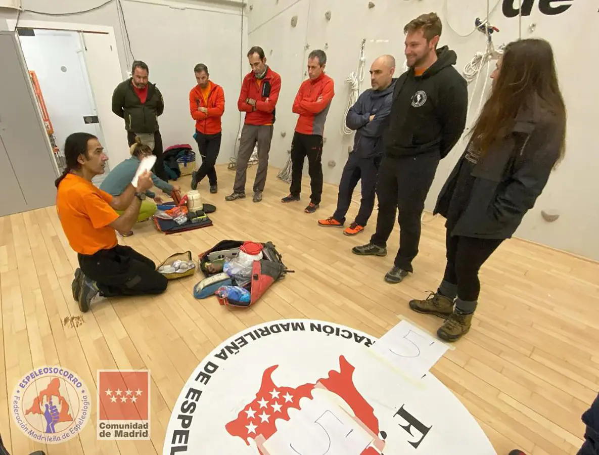 Comenzamos con un repaso de la valoración inicial del herido (X, A, B, C, D, E), y la jornada prosiguió con una dinámica de simulación de un sobre accidente en una práctica del grupo de socorro y su posterior puesta en común de los posibles aspectos a mejorar.